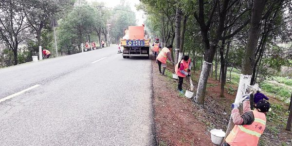 公路兩邊的樹木“穿”衣現(xiàn)場