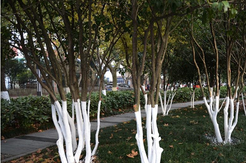 5.防止凍害。由于冬、春兩季晝夜溫差較大,通過涂白色石灰粉能反射陽光和紫外線對樹干的照射,使樹干基部熱量積累較小,減小晝夜溫差,避免白天樹液流動,夜晚溫度驟降造成的凍害。